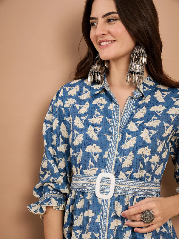 Belted kaftan kurtas or fitted A-line dresses in floral cotton. Choose bold prints because they will look great on your silhouette.